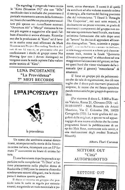 Il giorno dopo su "La Stampa" in un piccolo trafiletto si leggeva: "Sono tutti studenti di architettura che si cimentano con la new wave: il gruppo Luna Inesistente ha tenuto con successo uno spettacolo ieri sera al Tuxedo" Come? ..... Luna Inesistente!!!! Studenti di architettura!!!! ma quando mai..... certo che di cazzate ne scrivono i giornali!!!